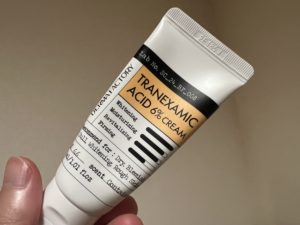 トラネキサム酸は、シミや肝斑、くすみに効果があるとされる成分で、DERMA FACTORYのこのクリームには6%という高濃度で配合されています。